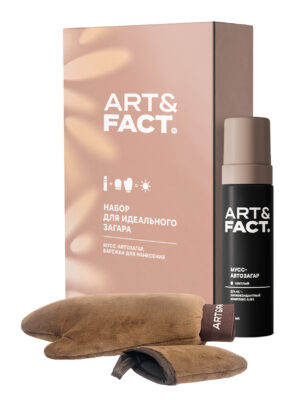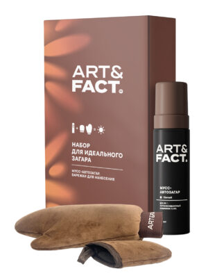 Набор для идеального загара (темный оттенок), мусс автозагар, варежка для тела + варежка для лица