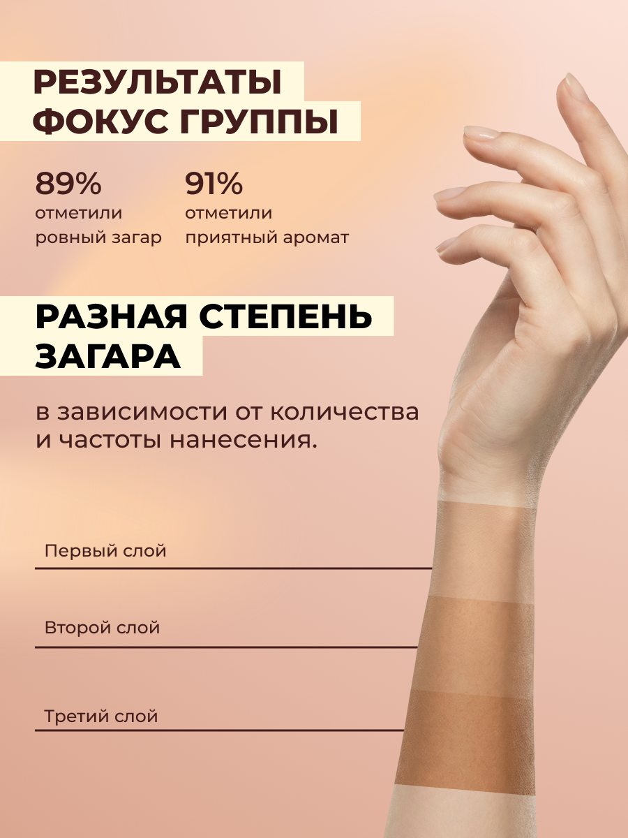 Важно: искусственный загар не заменяет ежедневную SPF-защиту. При активном пребывании на солнце используйте солнцезащитные средства.