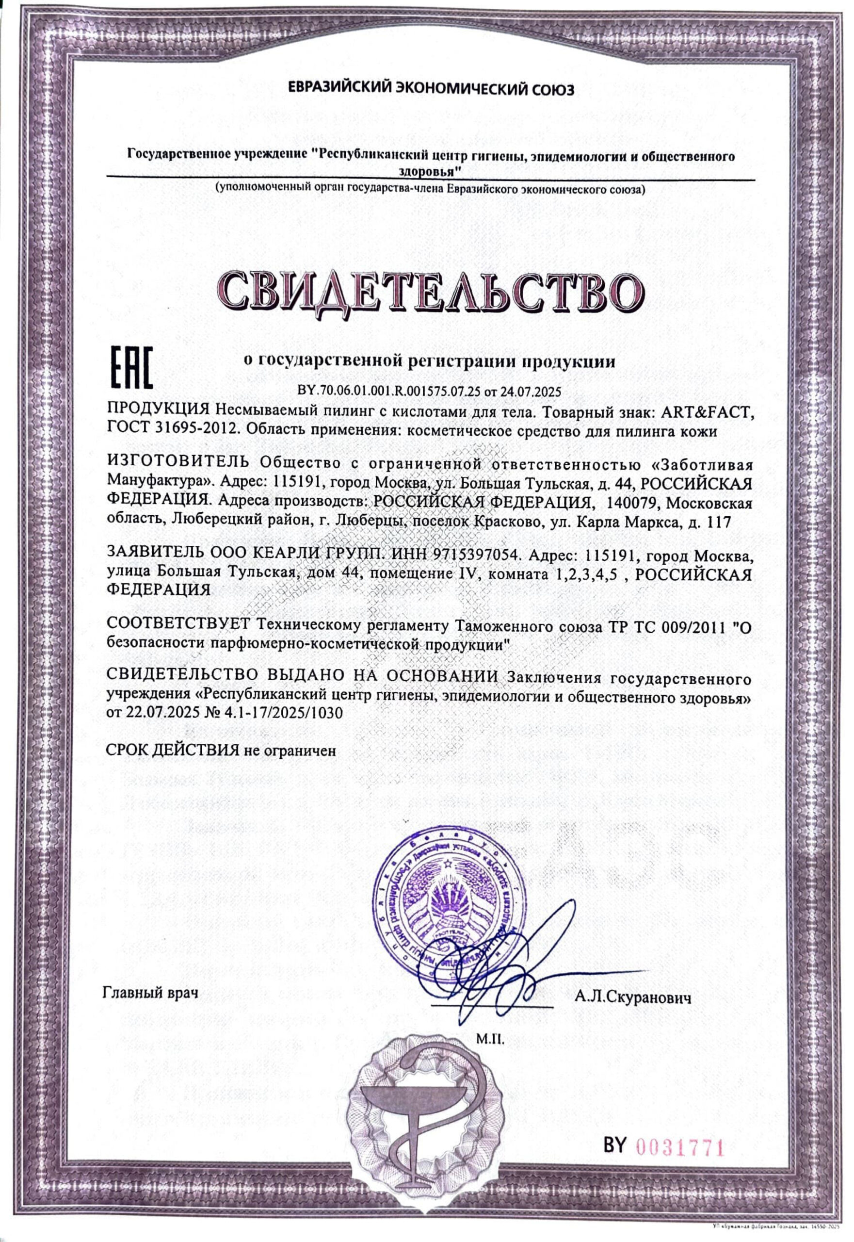 Несмываемый пилинг с кислотами для тела ART&FACT.