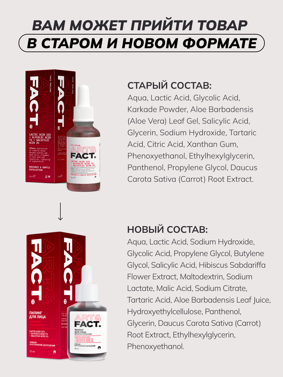 Пилинг дает быстрый эффект и переносится максимально комфортно даже чувствительной кожей. Может использоваться как перед важным мероприятием, так и в рамках пилингующего ухода. Концентрированная формула на основе молочной кислоты подходит для увлажняющего и в то же время мягкого отшелушивающего эффекта. Дополнительное содержание гликолевой, салициловой и винной кислот позволяет добиться свежей, ровной, чистой и сияющей кожи. Пудра из лепестков каркаде, а также экстракт корня моркови профилактируют появление гиперпигментации и поддерживают природную эластичность. Продукт не содержит искусственных красителей. В результате кожа становится свежей, ровной и сияющей, с улучшенной эластичностью и сниженным риском появления гиперпигментации, даже при использовании на чувствительной коже.