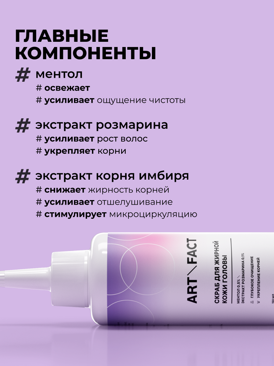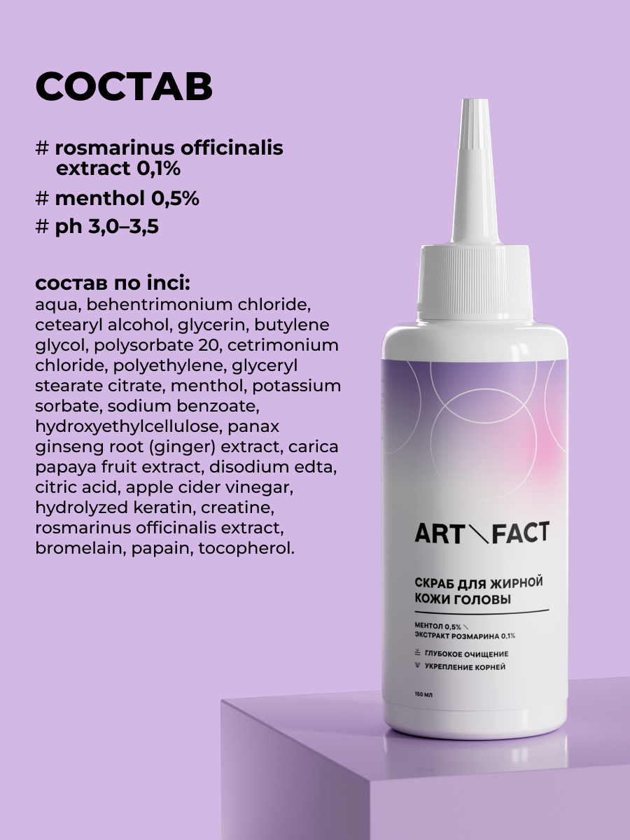 Себорегулирующий скраб способствует снижению повышенной жирности кожи головы, а также придает длительное ощущение свежести после мытья. Безопасные мельчайшие частицы, бромелайн и папаин эффективно устраняют омертвевшие клетки, глубоко очищая кожу головы. Корень имбиря способствует устранению патогенной флоры и укрепляет корни. Экстракт розмарина и ментол освежают кожу головы и обеспечивают активный приток кислорода. Скраб рекомендован для нормальной и жирной кожи головы.