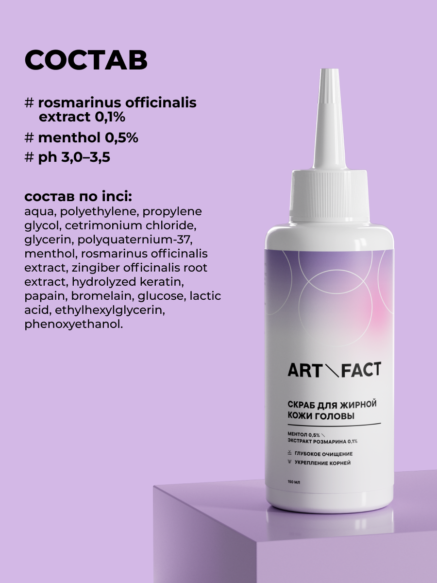 Себорегулирующий скраб для жирной кожи головы с ментолом 0,5% и экстрактом розмарина 0,1%