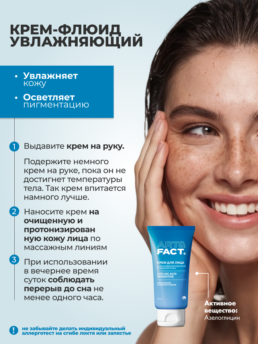 2. Увлажняющий крем-флюид для проблемной кожи лица с азелоглицином.