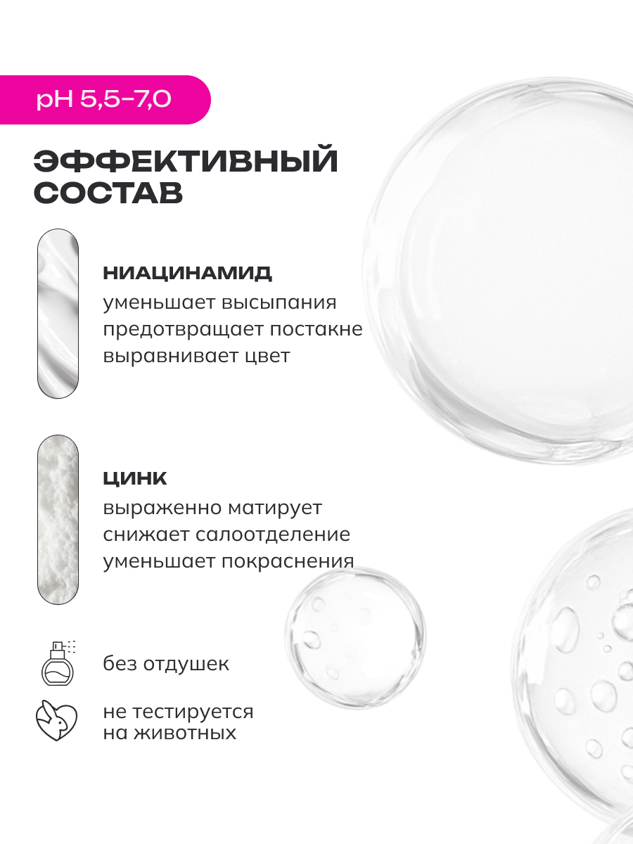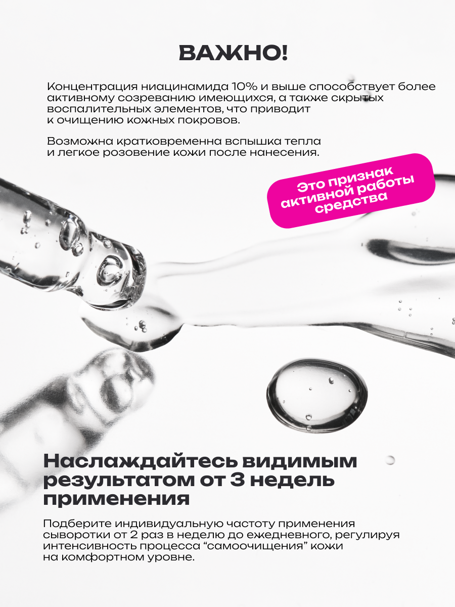 - Сыворотка: NIACINAMIDE 10%+ZINC 1%. Использовать 3 раза в неделю, Утро