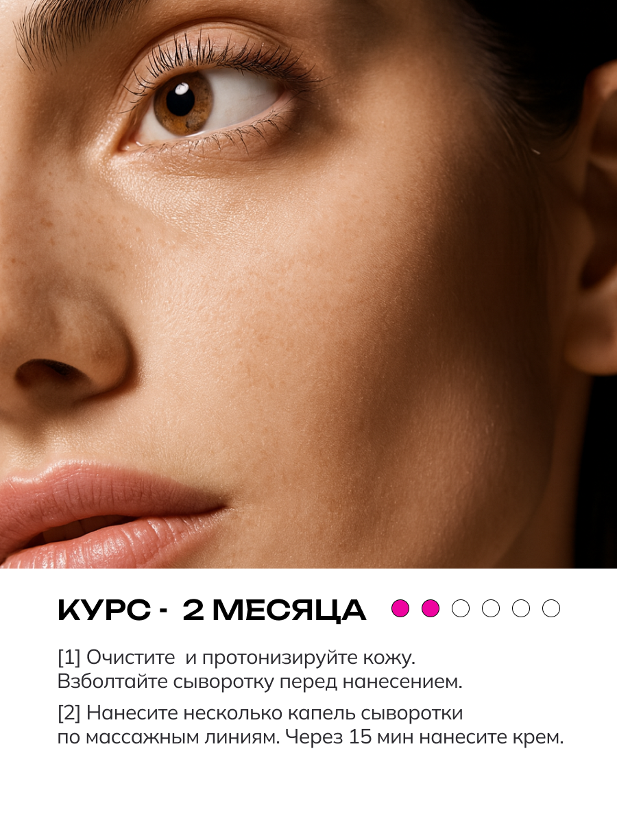 1. Наносить на очищенную протонизированную кожу 1–2 раза в день 2–3 раза в неделю.