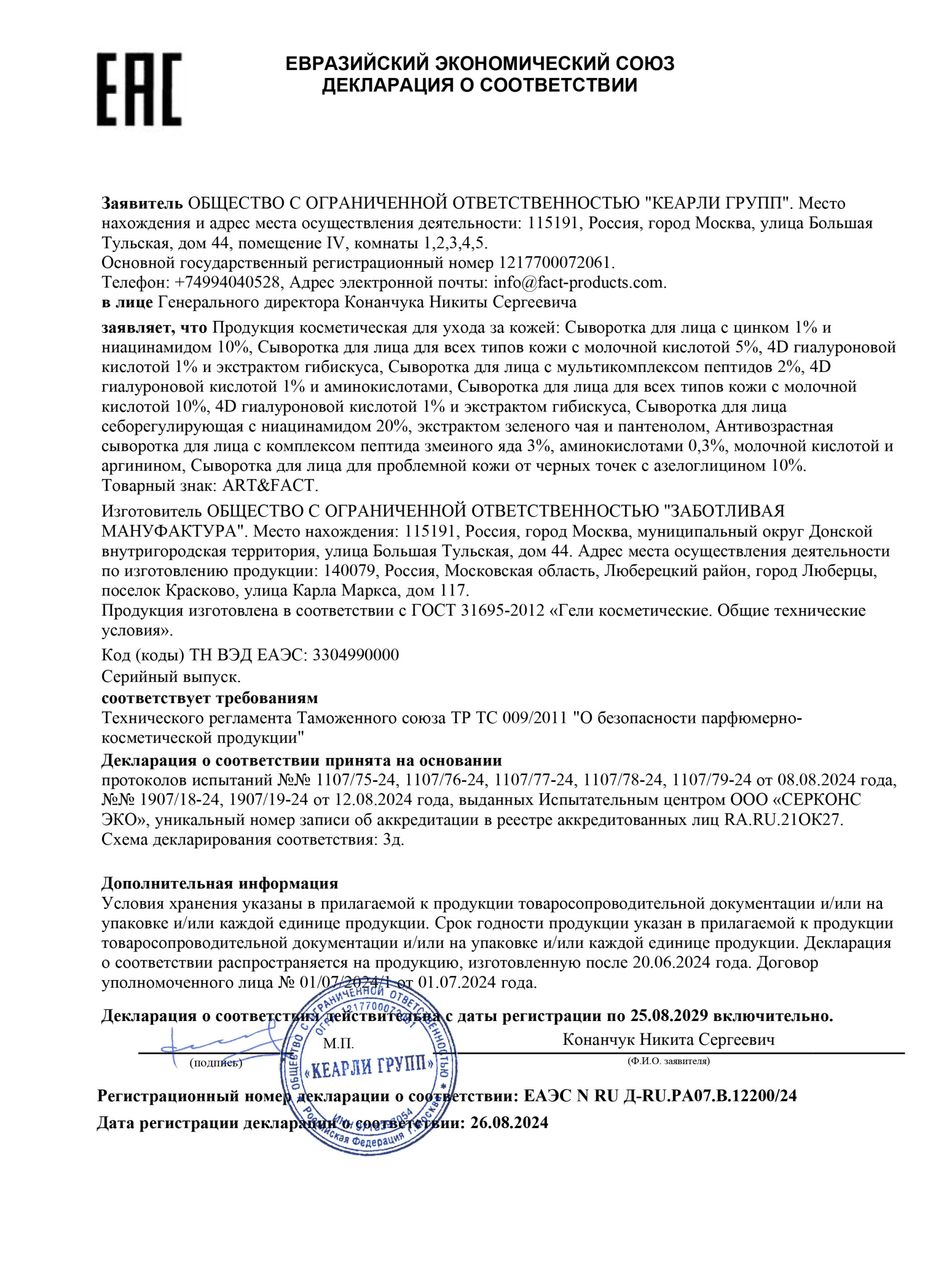 - Крем для лица 1: GALACTOMYCES FERMENT FILTRATE 7% + NIACINAMIDE 2% + CAMELLIA SINENSIS LEAF EXTRACT 3%. Использовать Ежедневно, Утром и вечером