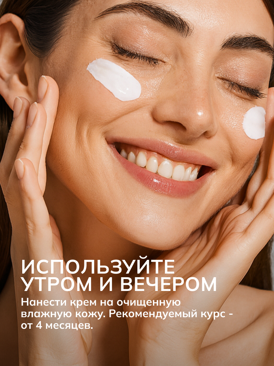 Нанести средство на влажную кожу. Использовать утром и вечером, курс — от 4 месяцев. Возможно использовать на постоянной основе.