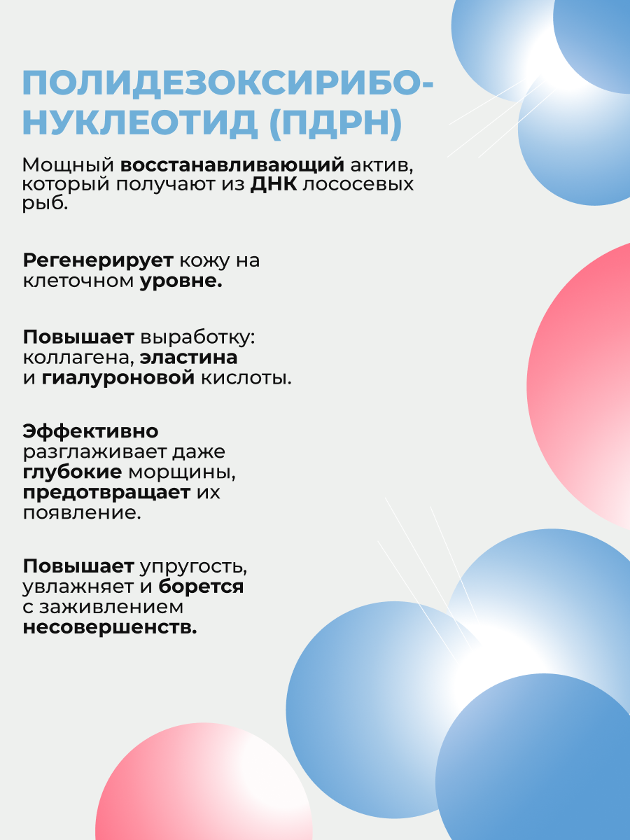 ПДРН поддерживает естественные процессы обновления кожи и укрепляет защитный барьер. Комплекс олигопептидов способствует восстановлению и комфорту кожи.