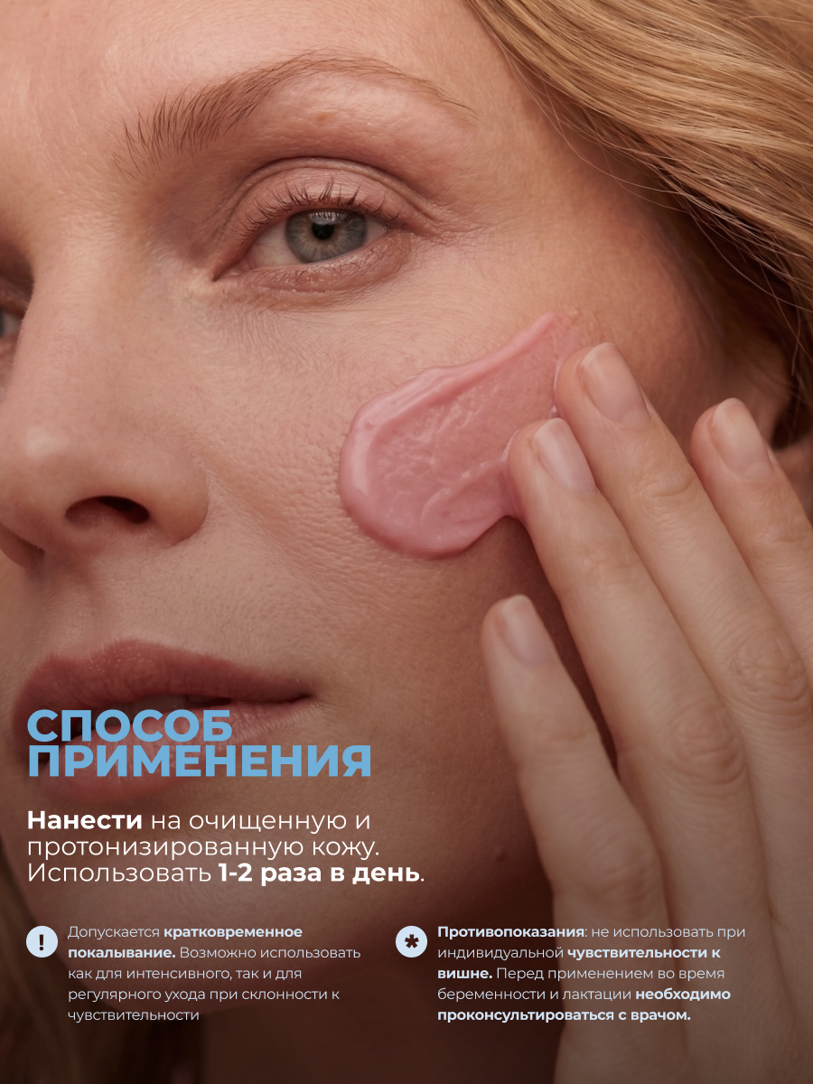 Мочевина и лецитин увлажняют и смягчают кожу без липкости и ощущения тяжести. Экстракт вишни защищает кожу от воздействия внешних факторов.