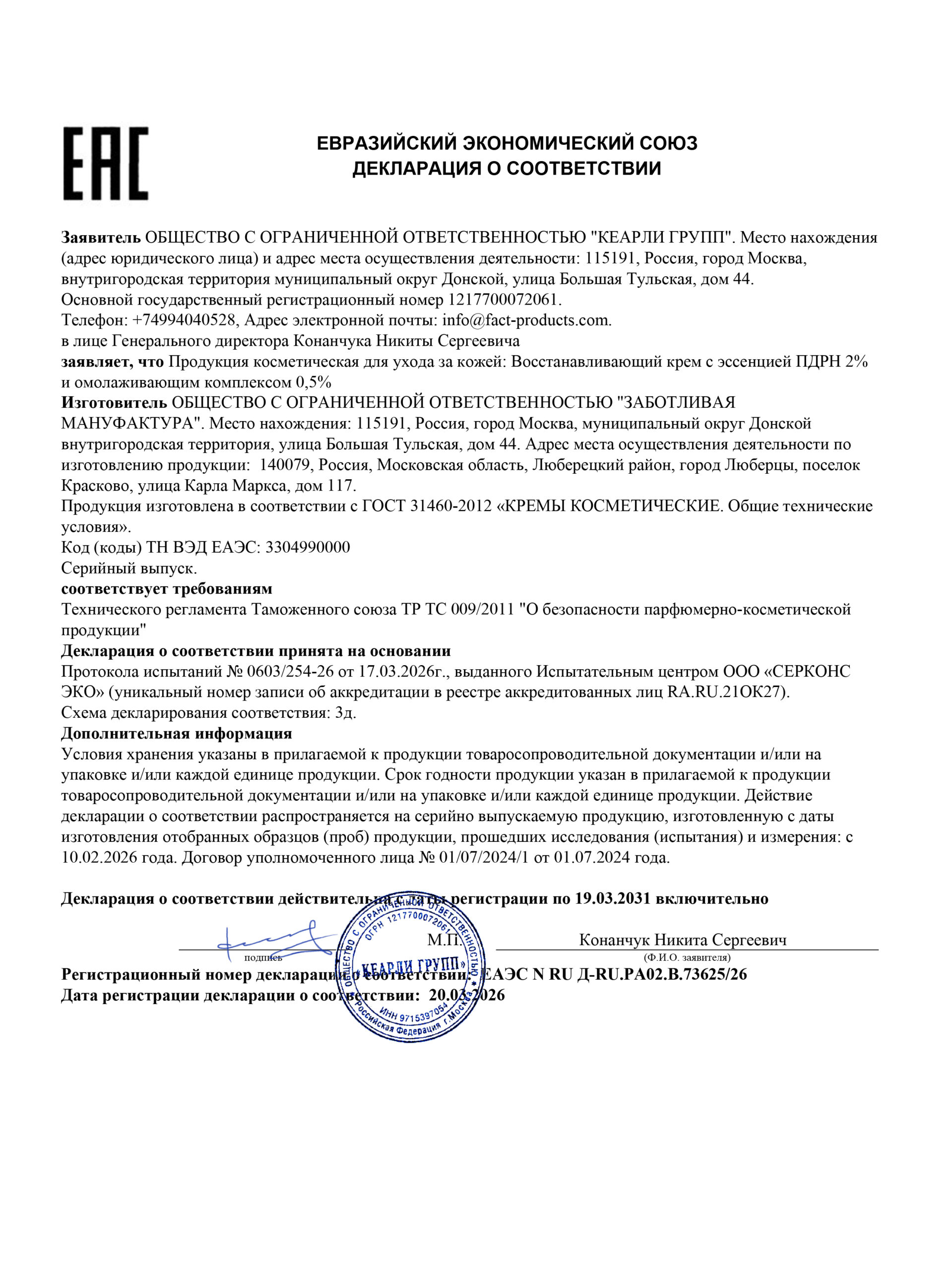В результате крем помогает коже быстрее восстановиться, снижает чувствительность и уменьшает признаки раздражения, подходит для ухода после агрессивных косметических процедур. Рекомендован для жирной, нормальной и комбинированной кожи в состоянии повышенной чувствительности.