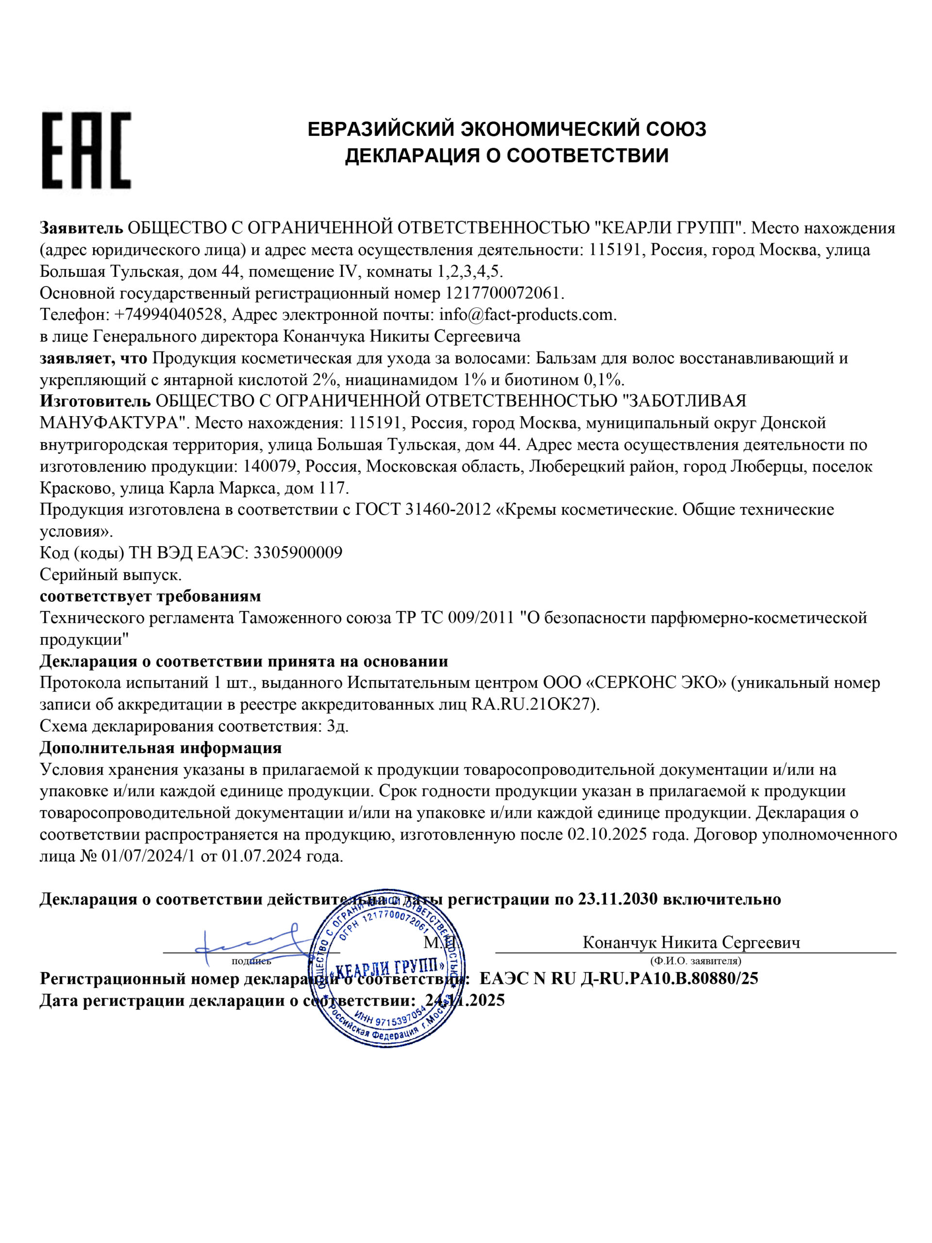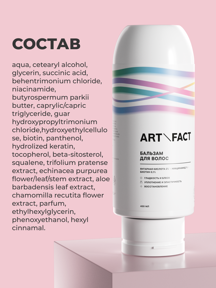 Бальзам для волос восстанавливающий и укрепляющий с янтарной кислотой 2%, ниацинамидом 1% и биотином 0,1%