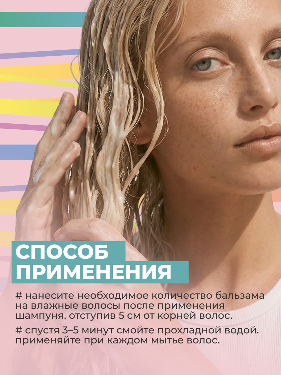 Нанесите необходимое количество бальзама на влажные волосы после применения шампуня, отступив 5 см от корней волос. Спустя 3–5 минут смойте прохладной водой. Применяйте при каждом мытье волос.