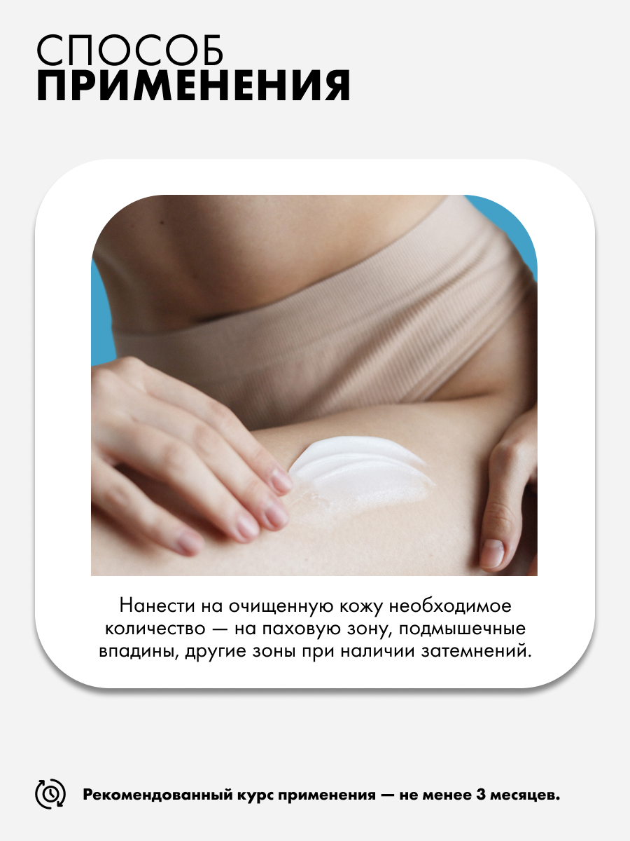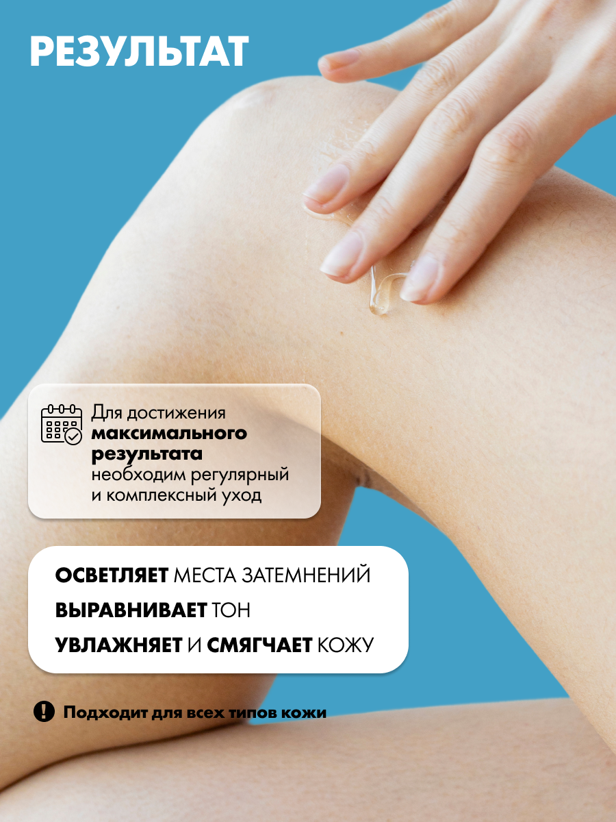 Витамин С и альфа-арбутин борются с гиперпигментацией, подавляют синтез меланина и при этом бережно относятся к чувствительной коже. Масла ши, кокоса и виноградной косточки смягчают кожу и оказывают защитный эффект. Пантенол обладает успокаивающим и увлажняющим действием. Молочная кислота ухаживает за интимной зоной. В результате крем способствует осветлению гиперпигментации.