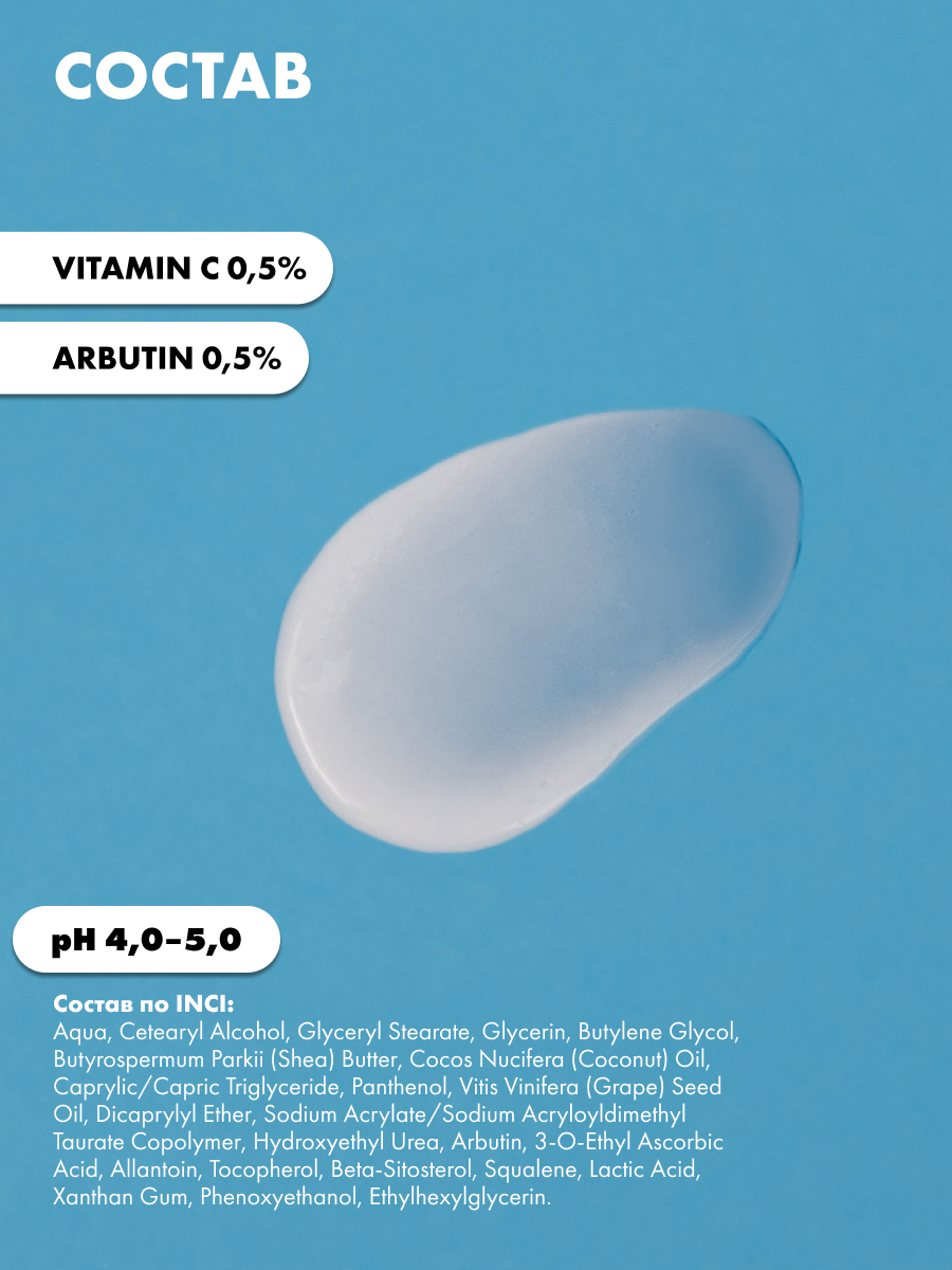 Отбеливающий крем для тела и интимных зон с витамином С 0,5% и арбутином 0,5%